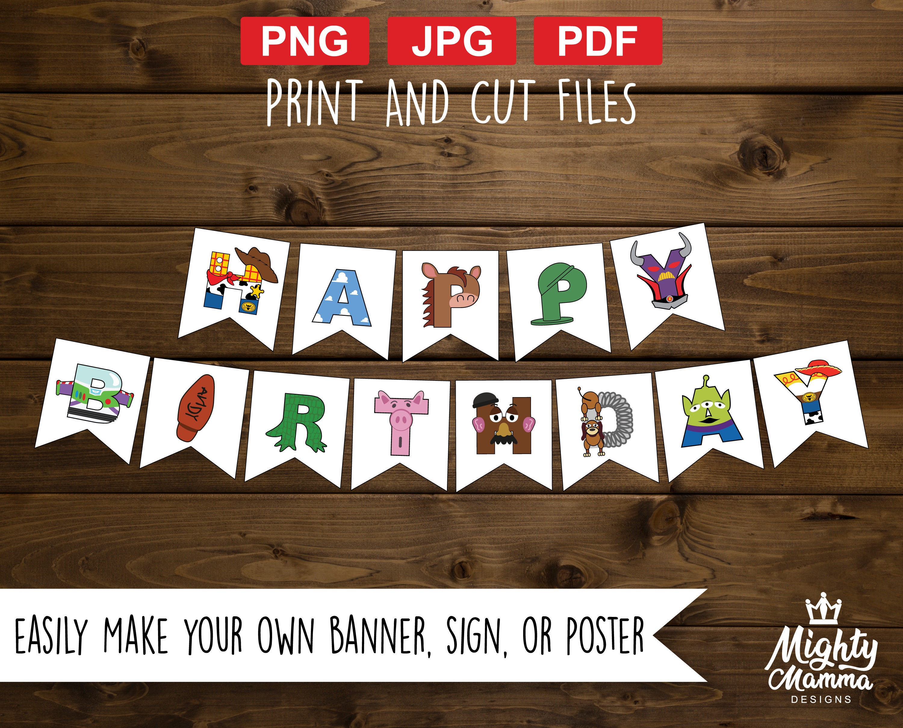 Happy Birthday Toy Characters Files Easily Make Banner Or Etsy