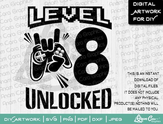 Svg Level 8 Unlocked Cut Or Print Diy Art 8th Eighth Video Etsy