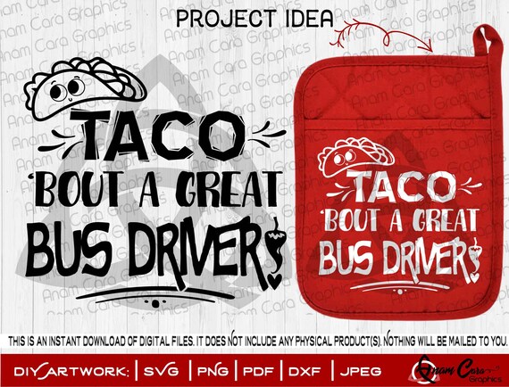 Taco Bout A Great Bus Driver Svg Cut Or Print Diy Art Etsy